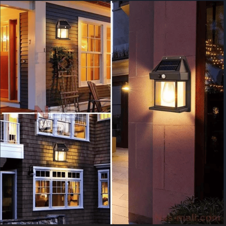 مصباح جداري خارجي يعمل بالطاقة الشمسية مع مستشعر حركة – إضاءة LED مقاومة للماء