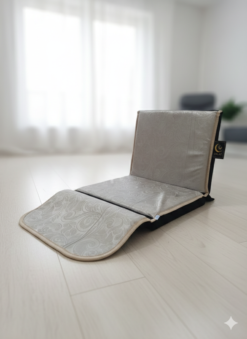 سجادة صلاة عملية ومبطنة مزودة بمسند ظهر مدمج لتوفير دعم مريح أثناء الصلاة، قراءة القرآن أو الجلوس لفترات طويلة. تصميمها القابل للطي يجعلها سهلة الحمل والتخزين، مما يجعلها مناسبة للاستخدام في المنزل أو أثناء السفر.